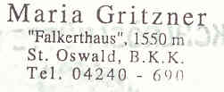 | 07.08. | Mirnock (mit V) P. Schlepplift vor Ghf. Bergfried (1130m) - Ghf. Possegger - Gupf - Mirnock (2110m) - Gupf - Weg 187, 186 - Ghf. Possegger - P. (1130m) W: sehr heiß, schwül, dann Gewitter, Hagel, kalt |
